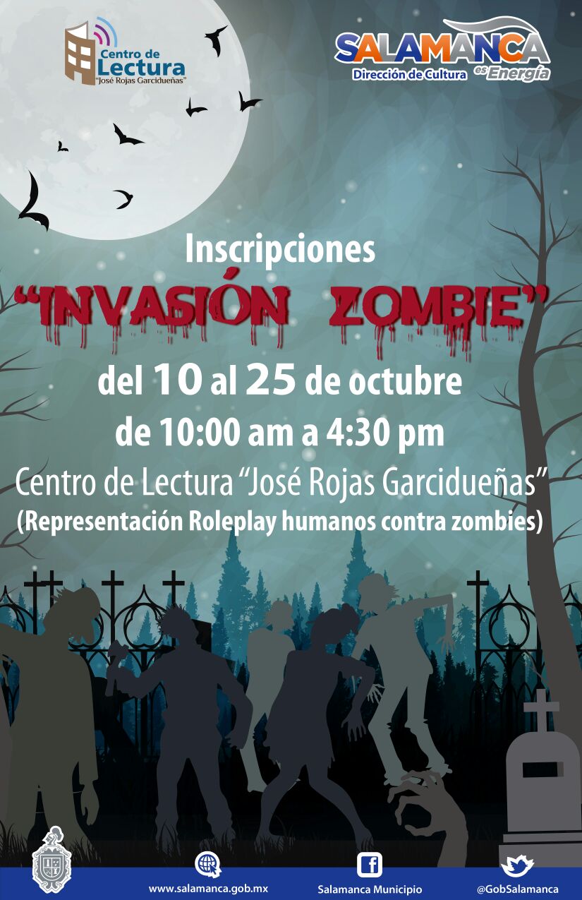 Bornio Mederos agregó que además de estos talleres de lecturas, se realizará la representación de Roleplay de Humanos contra Zombies titulado “Invasión Zombie”, las inscripciones comenzaron el día 10 y culminan el 25 de octubre en un horario de 10:00 de la mañana a 4:30 de la tarde.