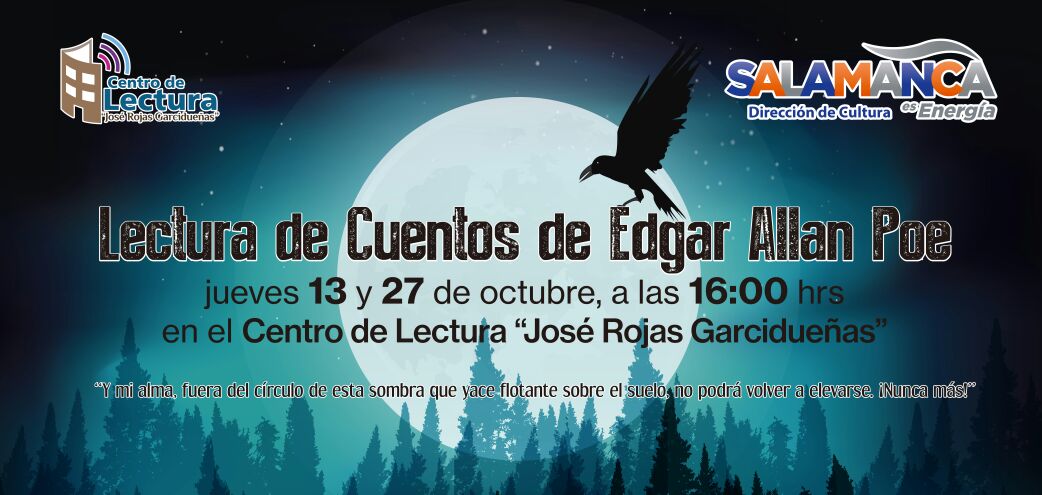 La titular del Centro de Lectura, Alejandra Bornio Mederos, dijo que este mes de octubre contará con una agenda muy nutrida; añadió que se impartirán los talleres de “Lectura de Cuentos de Edgar Allan Poe” que dará inicio los jueves 13 y 27 de octubre en punto de las 4:00 de la tarde y los jueves 6 y 20 se darán las lecturas de “Cuentos de H.P. Lovecraft a la misma hora; dichas lecturas estarán disponibles en las instalaciones del Centro de Lectura y son dirigidas a adolescentes.