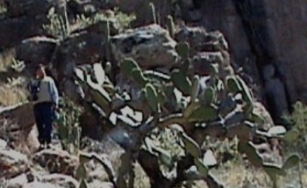 Pero, durante el barrido fotográfico personalmente, tome algunas graficas de mi compañero Fernando cuando se encontraba en una parte de la ladera rodeado de cactus , y fue en esta serie de fotos después de realizar nuestra visita y, estando en casa de uno de nuestros guías, cuando descubrieron ellos, la entidad que ahí habita.