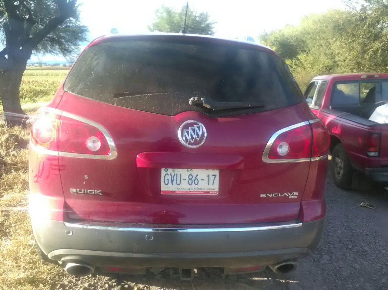 En el camino vecinal del canal de coria a la comunidad Razos de Ancón, minutos después de las 8 de la mañana se reporto a cabina de radio, que en el lugar antes citado, se encontraba una camioneta abandonada, por lo cual los policía se trasladaron al lugar y al arribar visualizaron a una camioneta marca Buick, color guinda, con número de placas de GVU8617 y con número de serie 5GAKV7ED6CJ284975, con visibles señas de abandono.