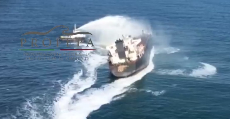 Destacó que la oportuna intervención de elementos de la Secretaría de Marina (SEMAR), PEMEX  y la Administración Portuaria (API) de Veracruz,  permitió  la evacuación de toda la tripulación de forma segura y oportuna el atacar la fuente de peligro.