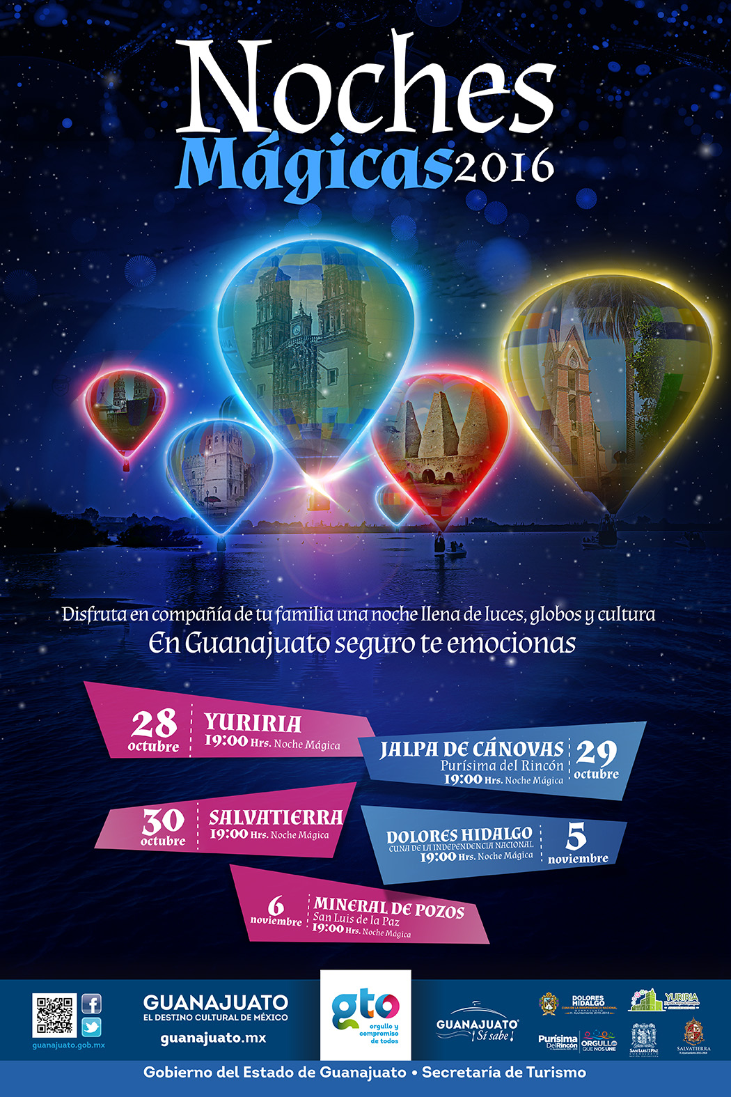 El sábado 5 de noviembre la Noche Mágica se presentará en Dolores Hidalgo, Cuna de la Independencia Nacional en el Recinto Ferial, a partir de las 19:00 horas.