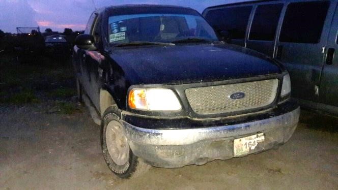 Camioneta marca Ford, F150, cabina 1/2, modelo 2000, color negro, sin placas de circulación, número de serie alterado.