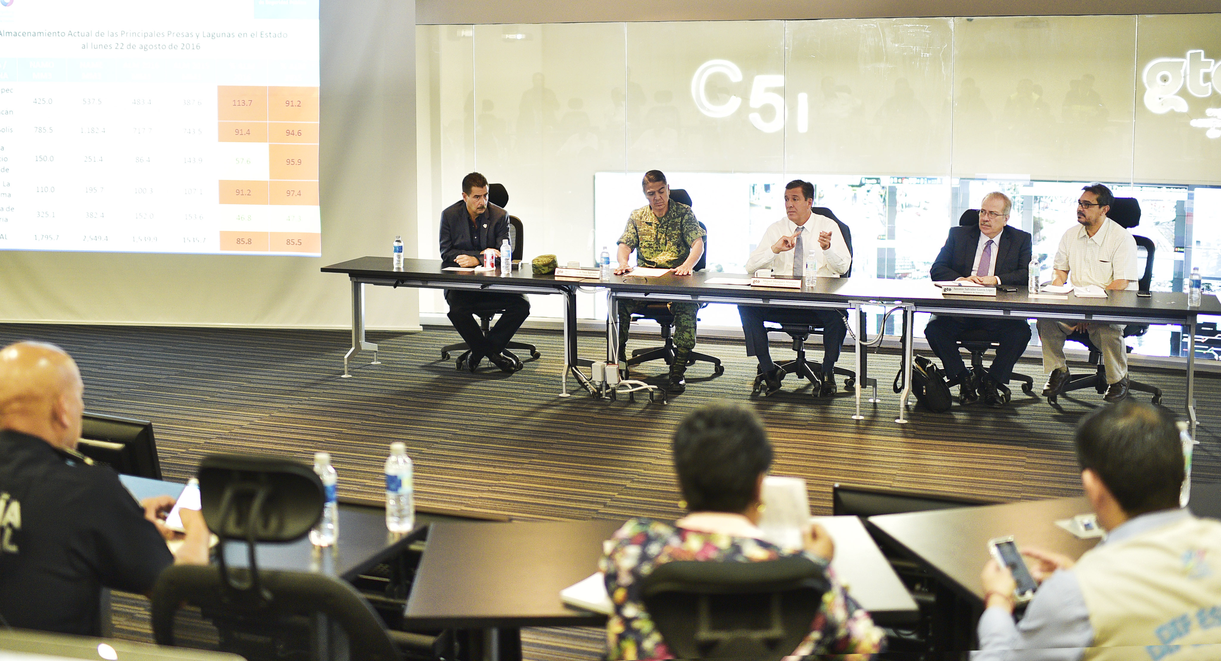 En esta mesa de trabajo, celebrada en el Sistema Estatal C5i donde participaron integrantes del Gabinete Estatal, así como del Grupo de Coordinación Guanajuato en materia de Seguridad, el Mandatario Estatal subrayó la importancia de mantener una comunicación y coordinación permanente entre las diversas instancias de gobierno, ante el pronóstico climatológico de que continuarán las lluvias durante las próximas 72 horas.