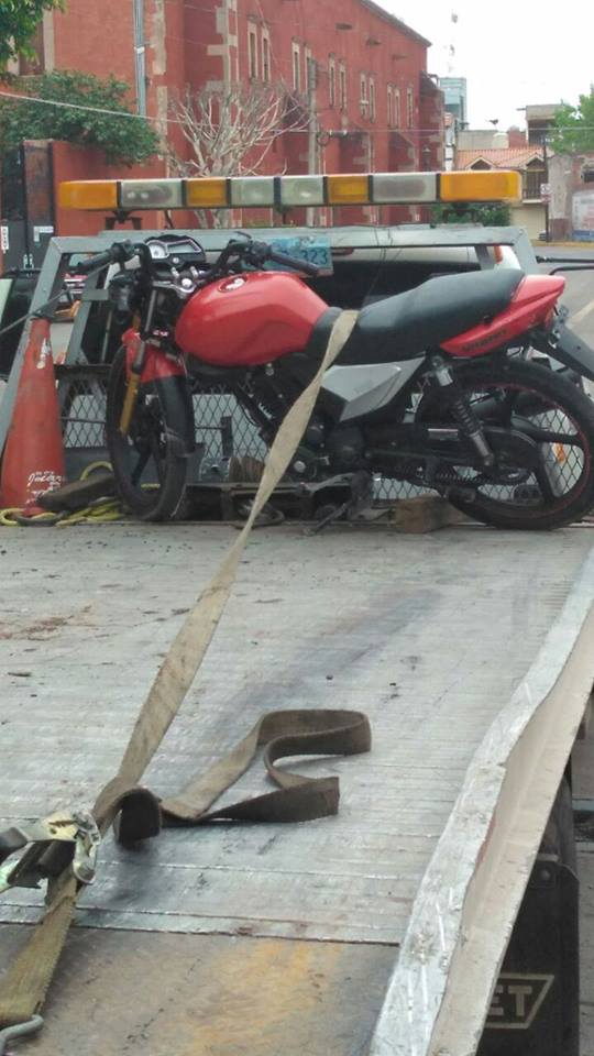 El día de hoy, cerca de las 16:10 horas, mientras los oficiales de vialidad se encontraban en el operativo de motociclista seguro  en la calle Morelos esquina con bulevar san pedro, vieron a un hombre que viajaba en una moto sin placas.
