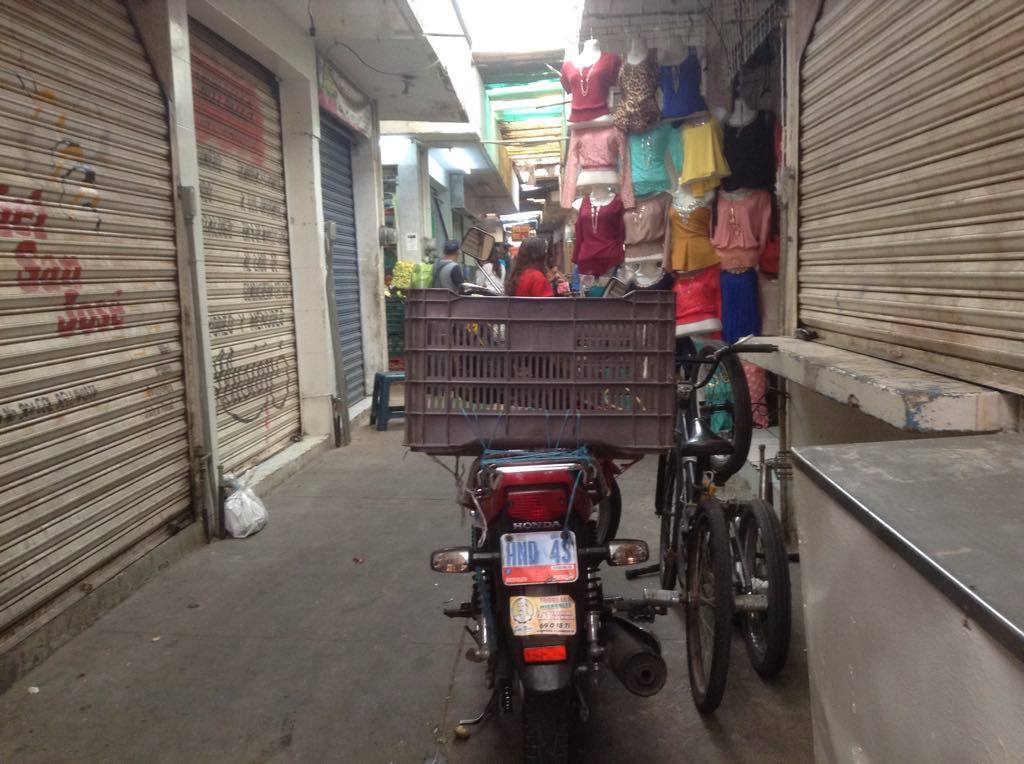 Tanto motociclistas como ciclistas circulan por los pasillos como si se trataran de calles o avenidas, además esos vehículos quedan estacionados sobre pasillos e impiden el paso de los compradores y comerciantes.