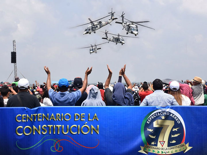 Miles de familias llegaron a la Base Aérea Militar 1 de Santa Lucía, ubicada en Zumpango, Estado de México, para disfrutar el séptimo Espectáculo de la Fuerza Aérea Mexicana, esta vez dedicado al Centenario de la Constitución.
