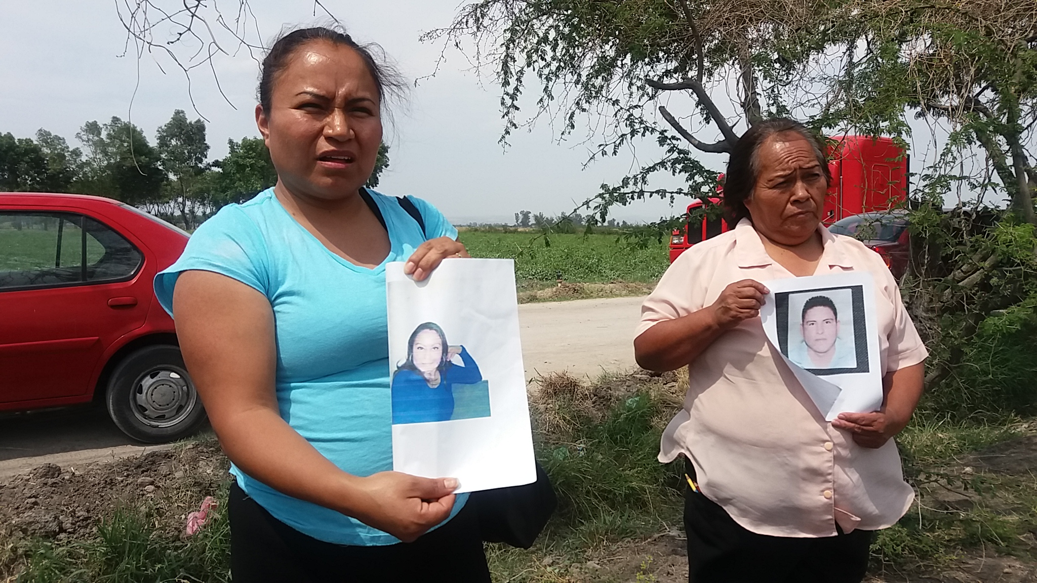 María Elena Medina García y Johana Zamora Medina, madre y hermana respectivamente de Alejandra quien al igual que su esposo de oficio obrero en una empresa cercana a Villagrán, en su desesperación por obtener información que ayude a su localización, solicitaron el apoyo de medios de información congregados en la comunidad de Suchitlán para la cobertura de la localización y rescate del pequeñito que cayó a un poso,