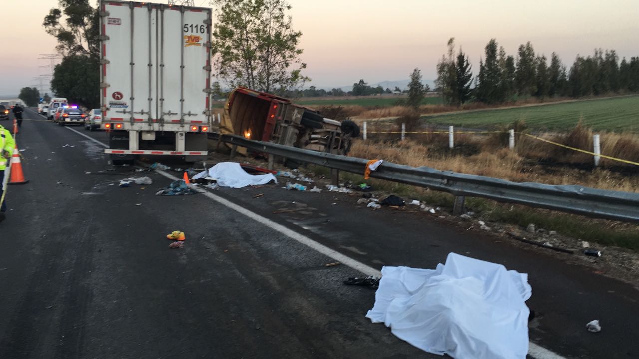 El choque por alcance entre un tráiler contra camión maletero en el que iban peregrinos provenientes de Sarabia, Villagrán con destino a San Juan de los Lagos, dejó como saldo a dos personas muertas y 11 lesionadas, que fueron trasladadas a diferentes hospitales en la ciudad de León y San Francisco del Rincón.