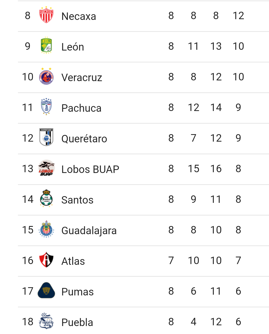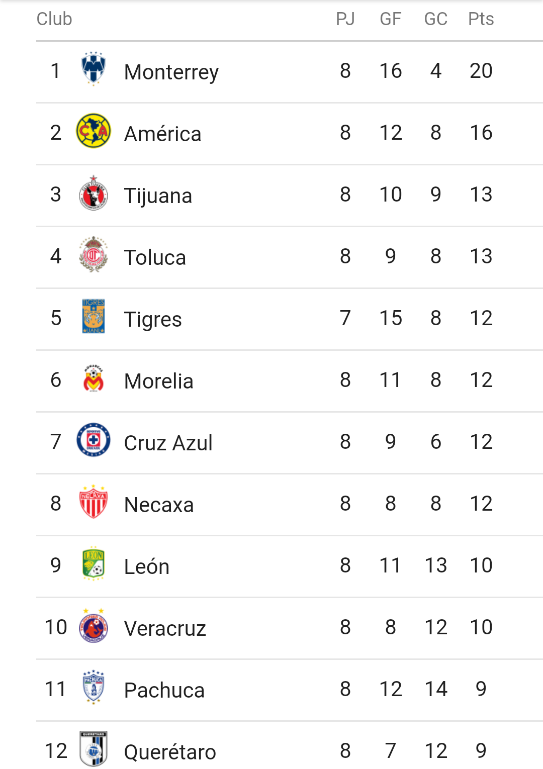 RESULTADOS DE LA JORNADA 8 DE LA LIGA MX