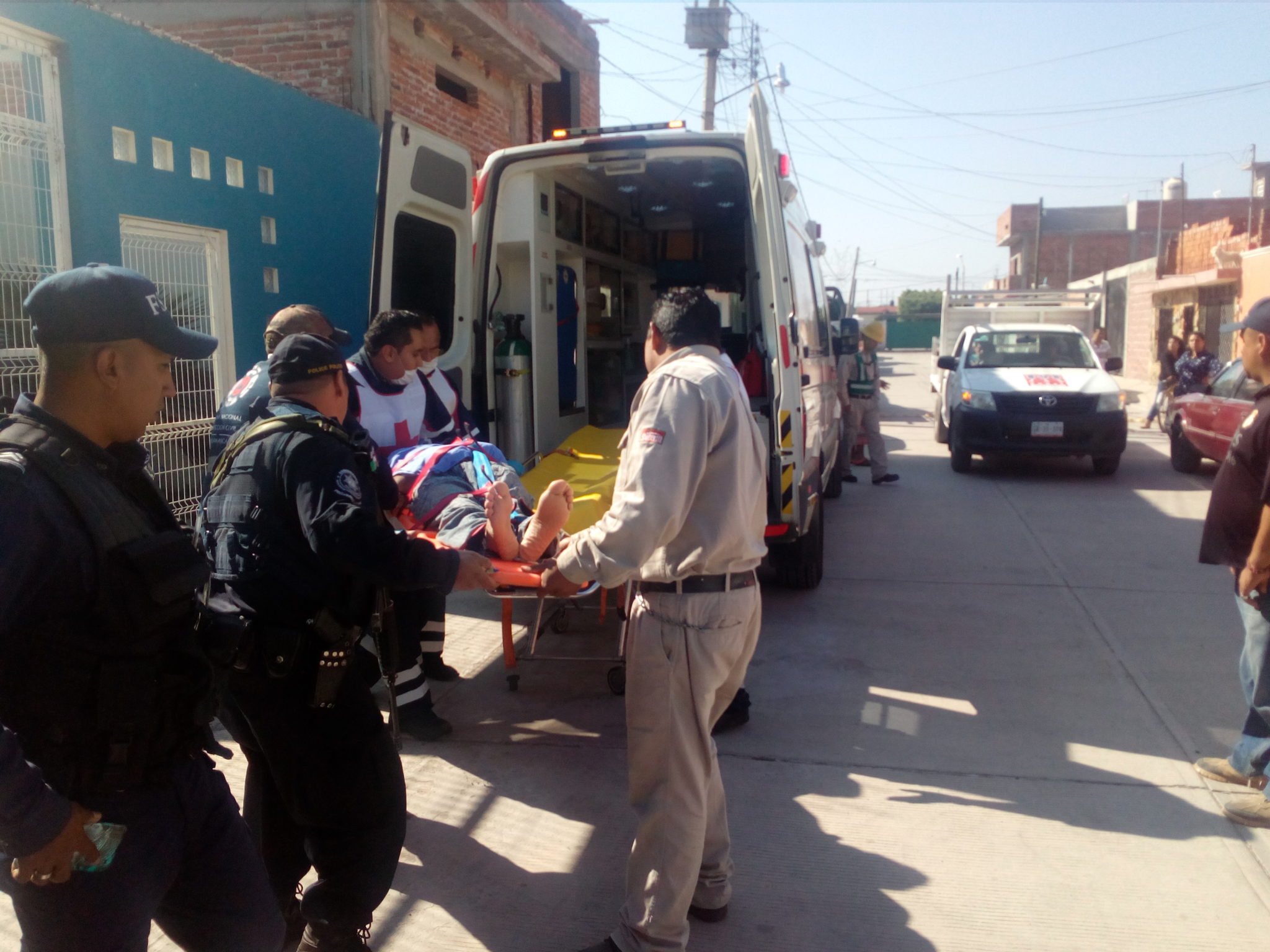 Al lugar llegó personal de policía, Protección Civil y Cruz Roja quiénes atendieron al lesionado identificado como Salinas Zavala de 40 años de edad, mismo que fue trasladado al Hospital General en estado grave.