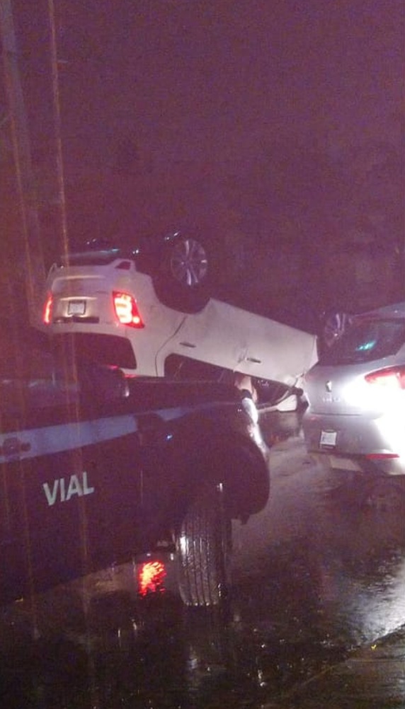 El conductor de este vehículo perdió el control y terminó con las 4 llantas de su camioneta hacia arriba, afortunadamente todo quedó en daños materiales ya que el participante resultó ileso al percance.