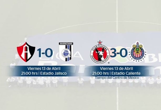 A la misma hora se jugó en el estadio Jalisco el encuentro entre el Atlas y el Querétaro, en donde los locales se impusieron a los gallos por la mínima diferencia-