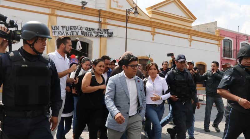 el conflicto comenzó cuando varias personas, afines al alcalde Miguel Ángel Caballero Yonca, entraron por la fuerza a la alcaldía para intentar recuperarla, lo que provocó un primer enfrentamiento; del cual los inconformes con la administración de Cballero Yonca convocaran a más pobladores mediante el repique de campanas y recuperarando el inmueble, luego de liarse a golpes con policías municipales de diversas demarcaciones y granaderos.