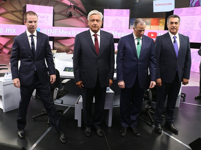 Andrés Manuel López Obrador, Ricardo Anaya Cortés, José Antonio Meade y Jaime Rodríguez Calderón, candidatos a la Presidencia de la República, se dieron cita en el salón itinerante del Museo del Mundo Maya, de Mérida Yucatán, para participar en el tercer debate presidencial.
