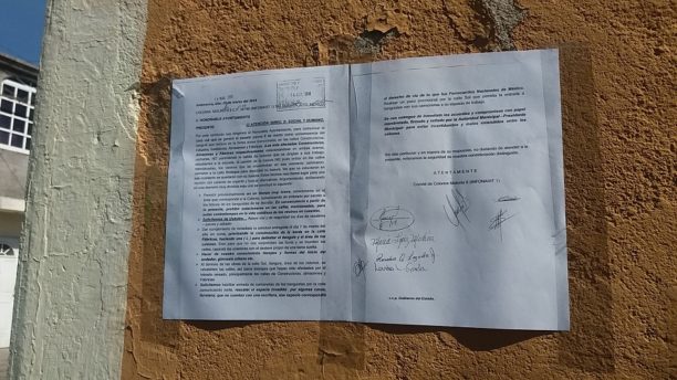 El acuerdo entre los colonos y el municipio es que 2 que “respetarían las cocheras, que estarían pendientes de supervisar la entrada y salida de los vehiculos, que se pondría mayor vigilancia para evitar a los delincuentes, que desde comunicación Norte habilitarían una entrada para que los mismos tianguistas estacionen sus vehículos sobre la calle Sol”.