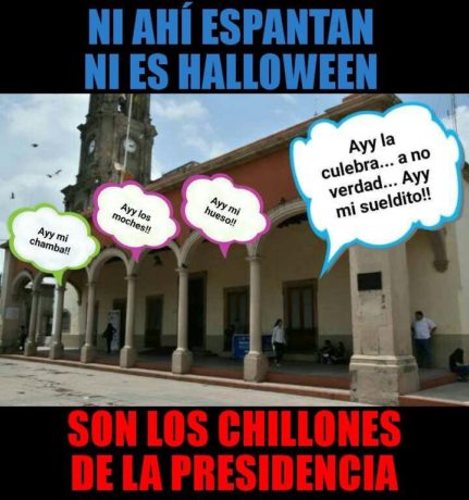 LLORANDO… Y es que según me chismean dicen que en el changarro del jardín principal se andan apareciendo varias lloronas, y es que en todos los pasillos se escuchan llantos y desesperación… pero no crean que por sus hijos… se lamentan porque ya no van a seguir cobrando su sueldito sin trabajar, andan llore y llore sin que nadie pueda consolarlos, y es que dicen que ahora sí tendrán que trabajar para ver lo que es ganarse el dinero con el sudor de su frente y no por ser cuates de los que están en el poder.