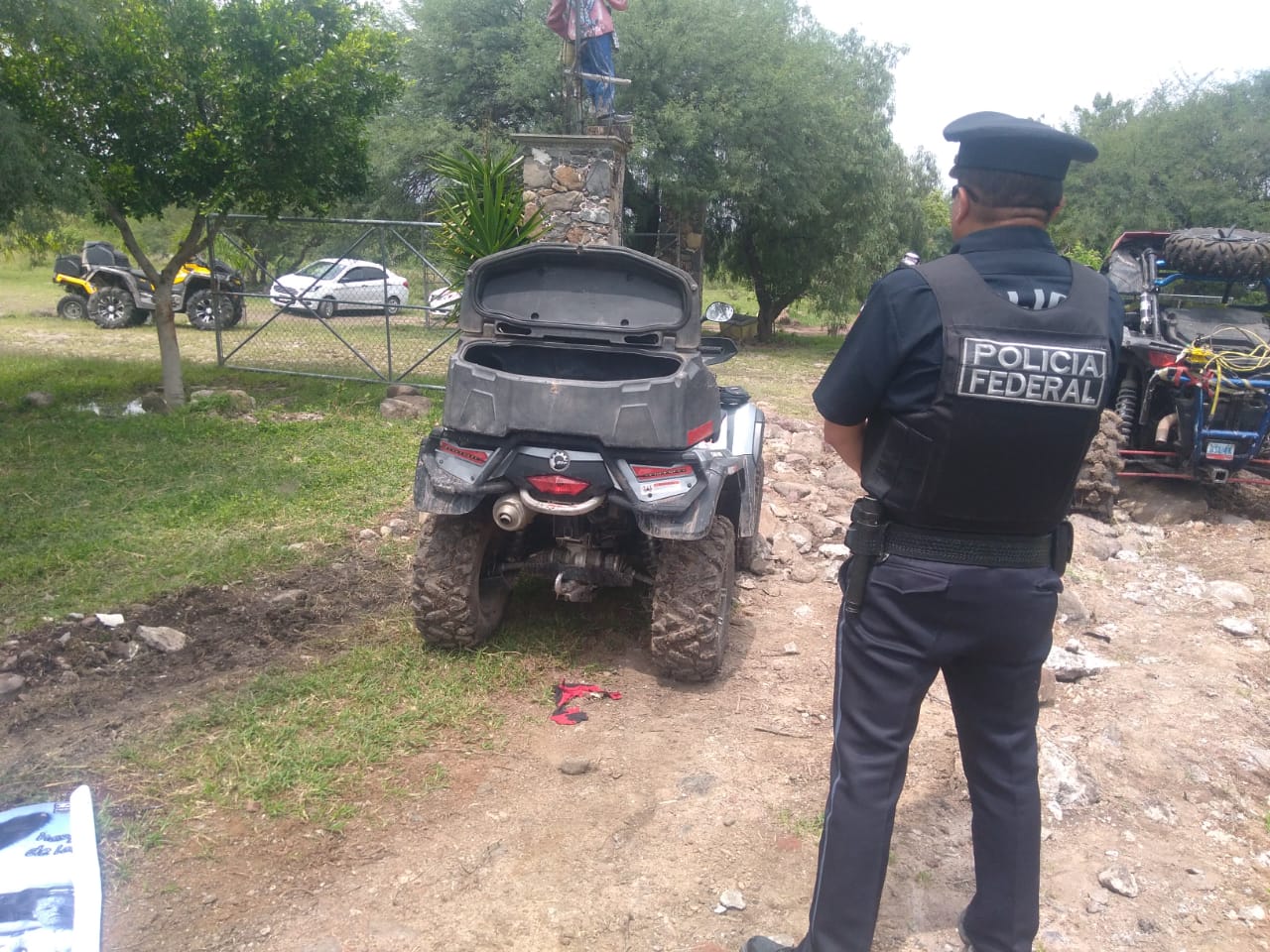 Dentro del lugar, los agentes federales aseguraron once vehículos tipo Racer, tres cuatrimotos, y una motocicleta, utilizadas para terrenos de difícil acceso, junto con un vehículo tipo sedán, dos camionetas, un tracto camión, y una grúa, de dudosa procedencia.