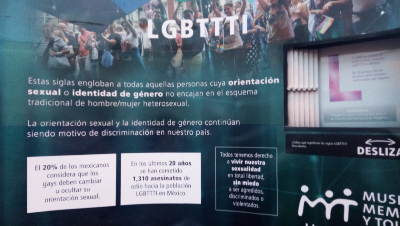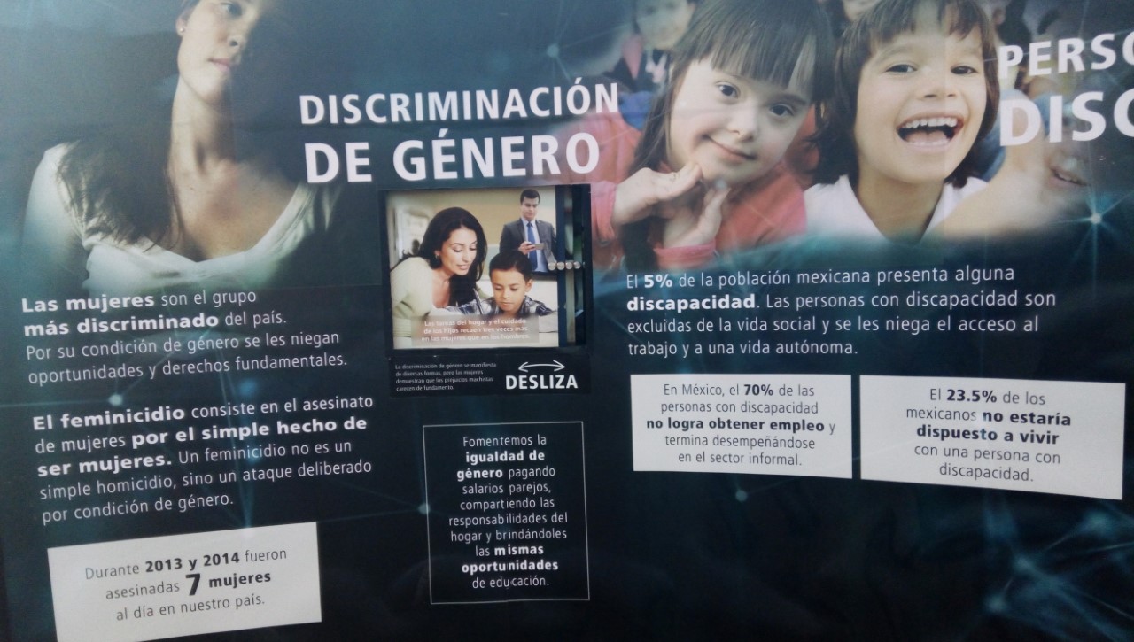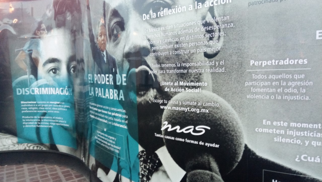 Por las partes superiores de fuera del túnel, se encuentran temas como, el poder de la palabra, discriminación, estereotipos y prejuicios, tolerancia, comunidad LGBTTTI, clasismo, racismo, adultos mayores, personas con discapacidad y discriminación de género.