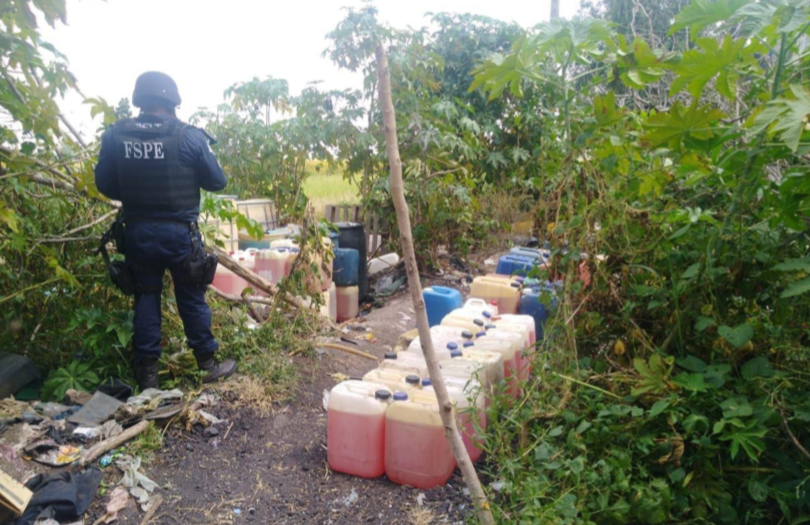 Durante labores de vigilancia y prevención sobre la calle Soledad de dicha comunidad, elementos policiales realizaban labores de vigilancia y prevención, cuando detectaron 66 contenedores con hidrocarburo.