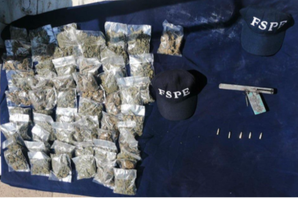 Irapuato, Gto., Cerca de mil dosis de mariguana, un arma de fuego de fabricación casera y cartuchos útiles fueron asegurados por elementos de las Fuerzas de Seguridad Pública del Estado en esta ciudad.