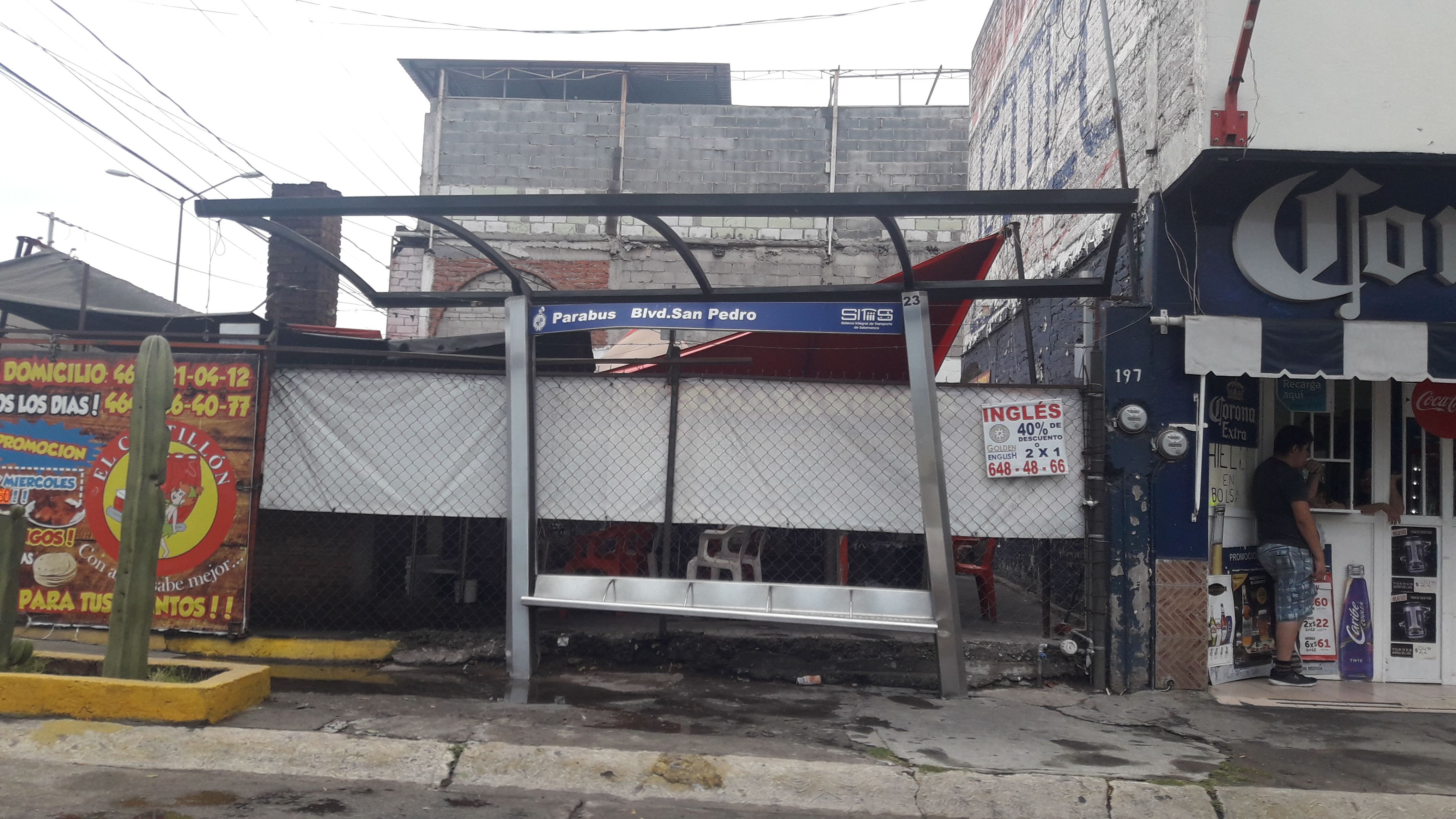 Las paradas que se instalaron en la pasada administración municipal, se encuentran vandalizadas, con el techo quebrado, por lo que no protegen del sol a las personas que llegan para esperar el camión; además de que hay muchas que tienen los asientos doblados o caídos, porque brincan sobre ellos y la pared de publicidad también está dañada.
