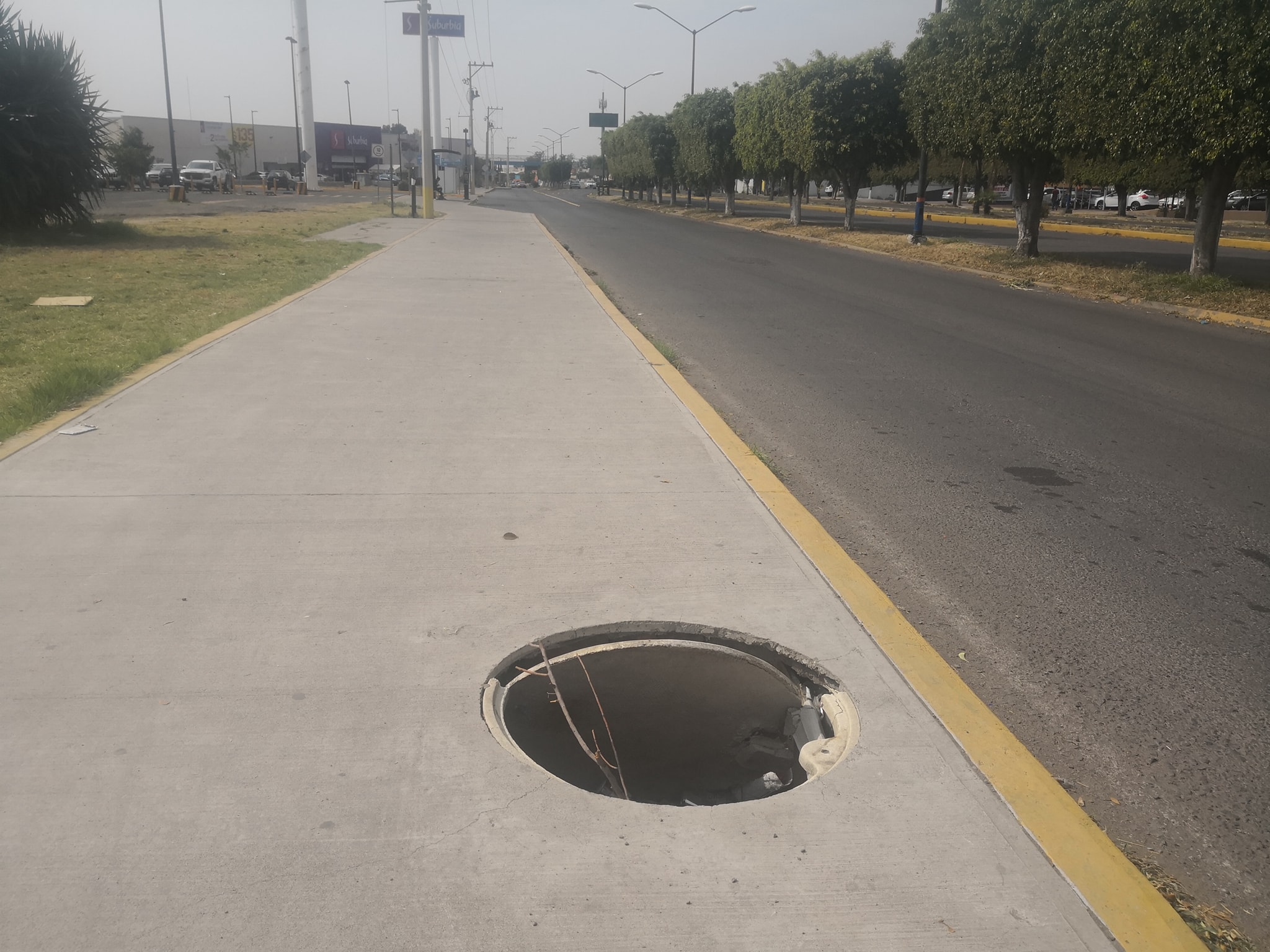 Un ciudadano a través de un reporte, comunicó que en la esquina de Hidalgo y Emilio Carranza, se encuentra abierta una coladera que provocó la caída de una mujer quien se hundió en el agujero que únicamente estaba encubierto con un triplay.
