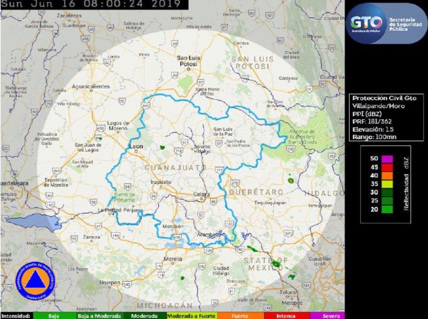 La Secretaría de Seguridad Pública del Estado a través de la Coordinación Estatal de Protección Civil, informa que de acuerdo a dicho reporte de Conagua, además de Guanajuato, se tendrá presencia de lluvias muy fuertes en los estados de Hidalgo, Michoacán, Querétaro, Estado de México y Ciudad de México.