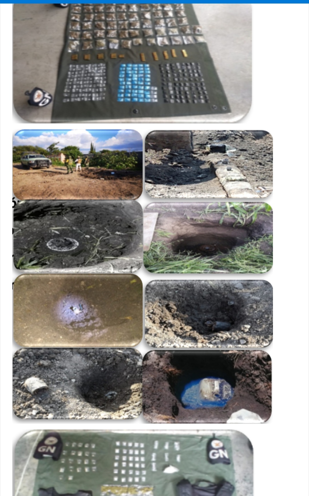 En el municipio de Acámbaro, en un camino de terracería se localizaron 10 kilogramos de marihuana; y en el municipio de Cortazar, se detuvo a un masculino con 44 dosis de cocaína, 400 de marihuana, 1 arma larga, 28 cartuchos y un cargador.