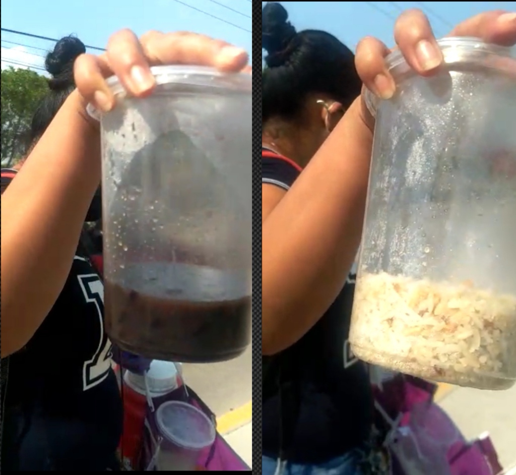 En un video se puede evidenciar cuando algunas mujeres indican que no esperaban esa cantidad de alimentos y muestran los envases con la poca porción de frijoles y arroz que les fueron entregados.