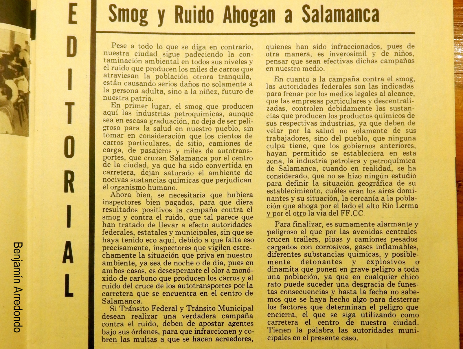 La Contaminación Ambiental era el tema de casi todos los días, no solamente la del aire, sino también la que muchos ciudadanos y empresas producían en el río Lerma.