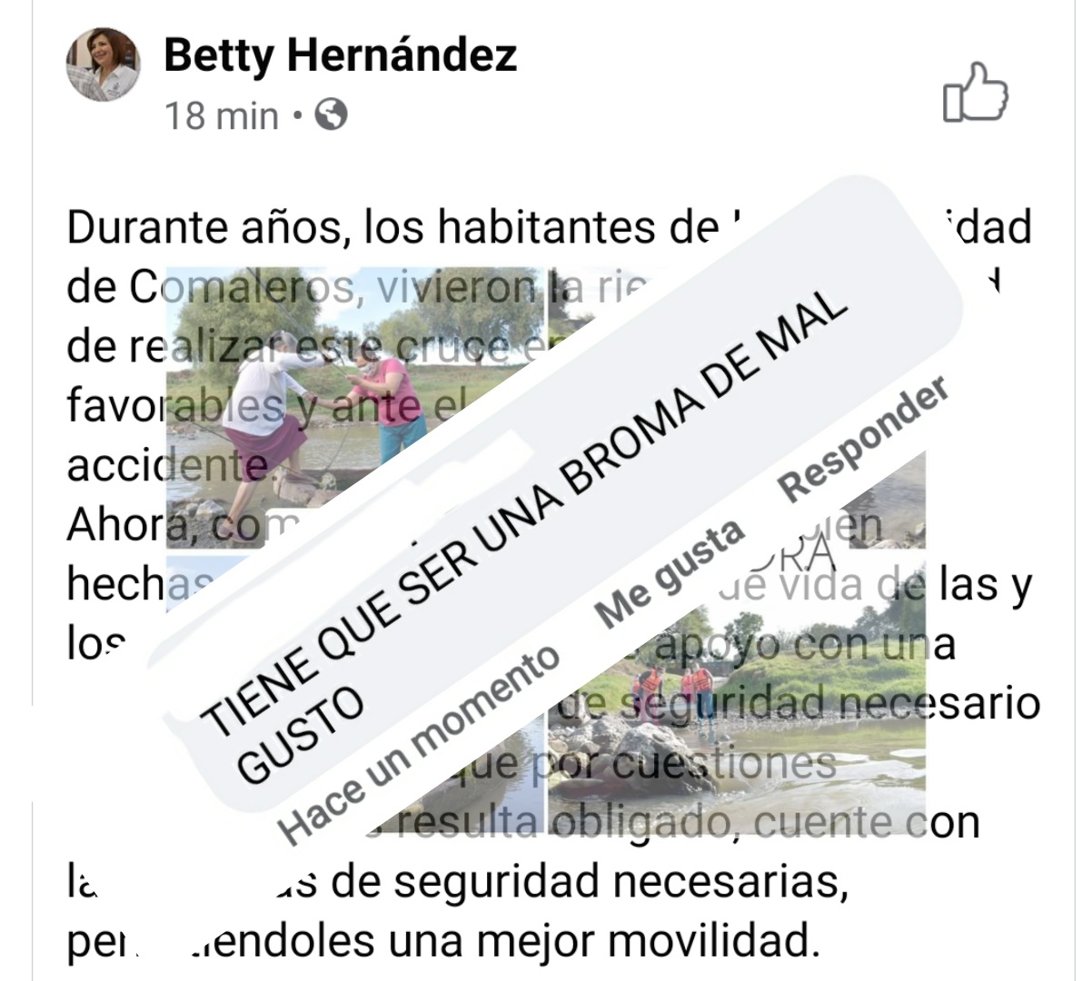 Lo que llamó a las críticas de los usuarios de redes sociales, fue el hecho de que la alcaldesa, asegurara que con esta nueva lancha, se extinguía el riesgo a los habitantes al momento de cruzar, situación que para nada es así, ya que no existe alguna garantía de protección o seguridad, pues el nivel y fuerza del agua siguen siendo los mismos.