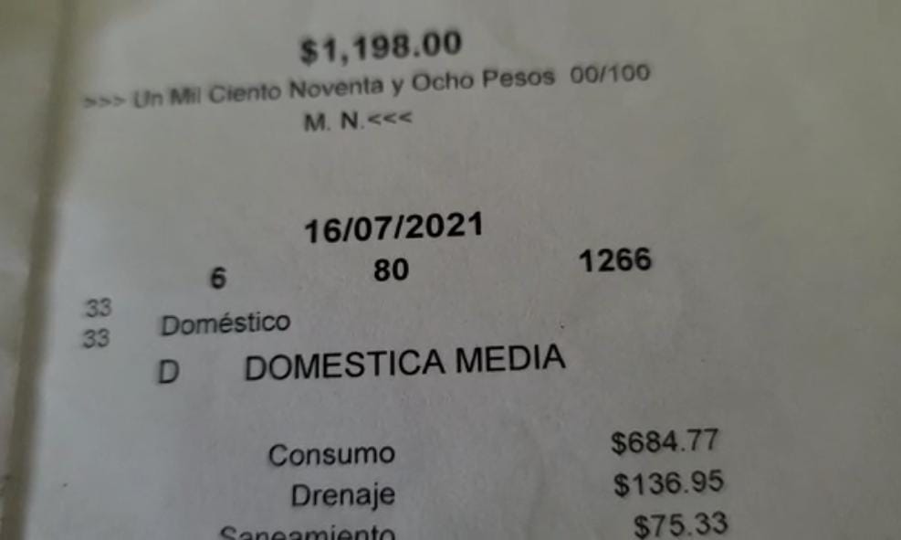 Regularmente Rosa Isela pagaba entre 280 y 300 pesos por el servicio del agua en su casa, y desde junio de este año ha ido en aumento el cobro hasta llegar a pagar 1,200 pesos.