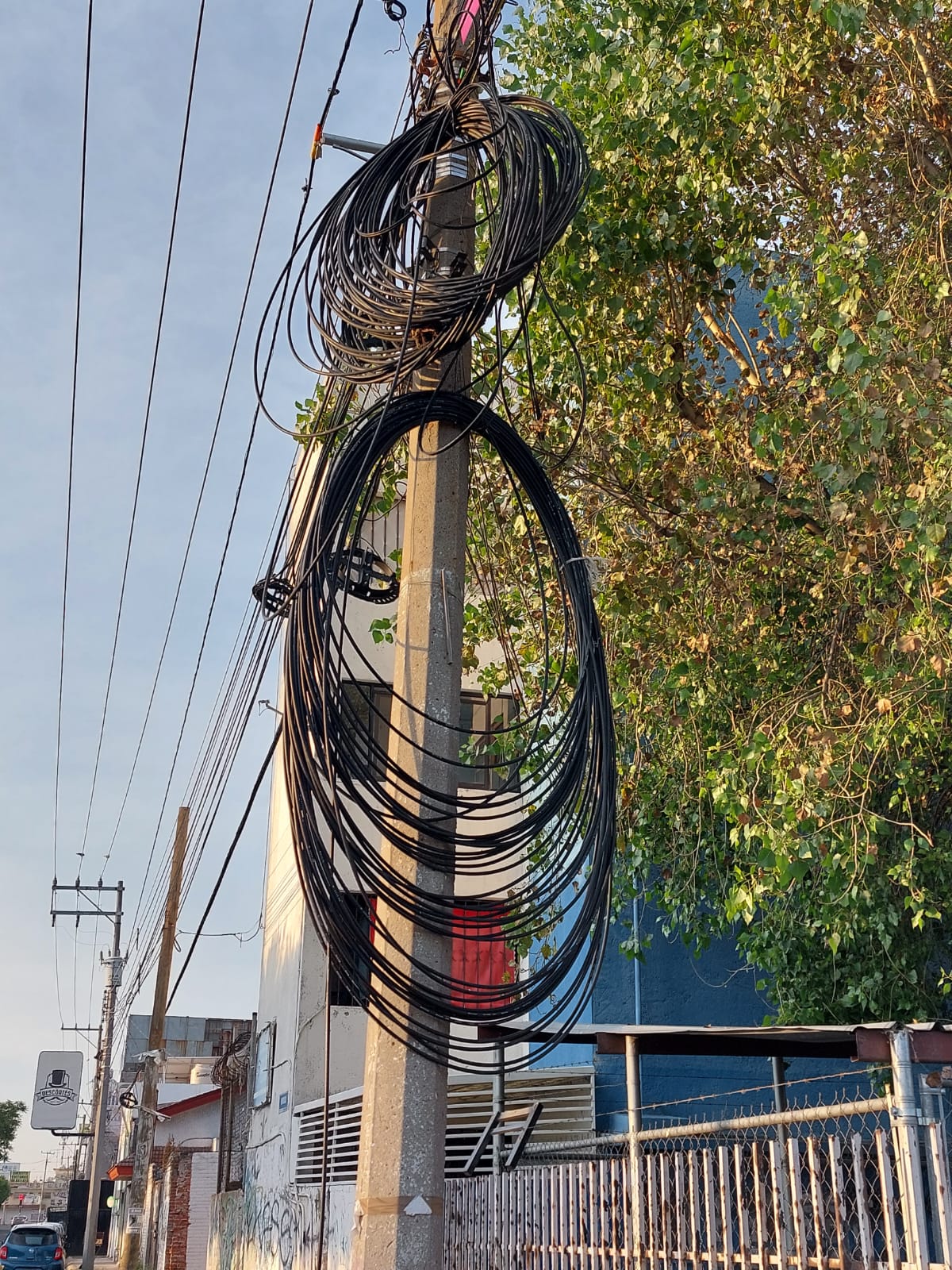 Es común observar cantidades excesivas de cable de fibra óptica que son dejadas en postes tanto de alumbrado público como de otro tipo, lo que ha ocasionado en más de una ocasión algún corto circuito; así lo señaló el director de Servicios Públicos Municipales, Alejandro Meneses Molina, quien asegura que los cableros han metido en serios problemas a su dependencia con estas acciones.
