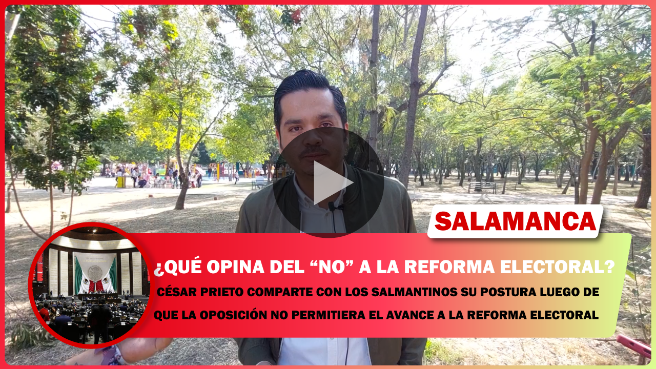 CÉSAR PRIETO COMPARTE CON LOS SALMANTINOS SU POSTURA LUEGO DE QUE LA OPOSICIÓN NO PERMITIERA EL AVANCE A LA REFORMA ELECTORAL