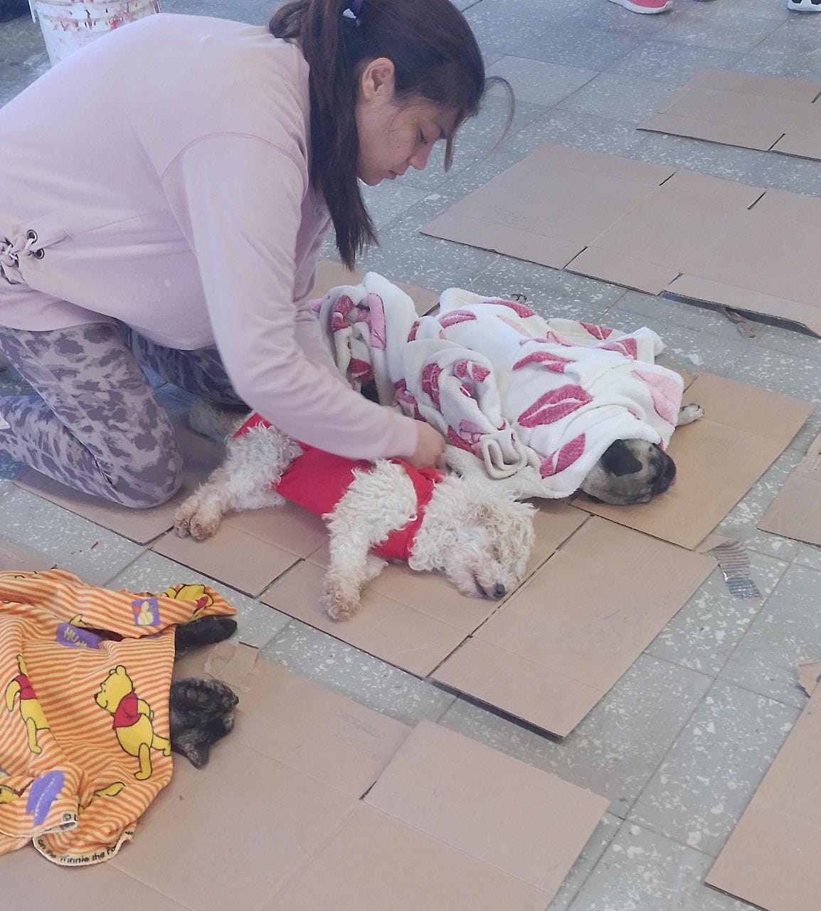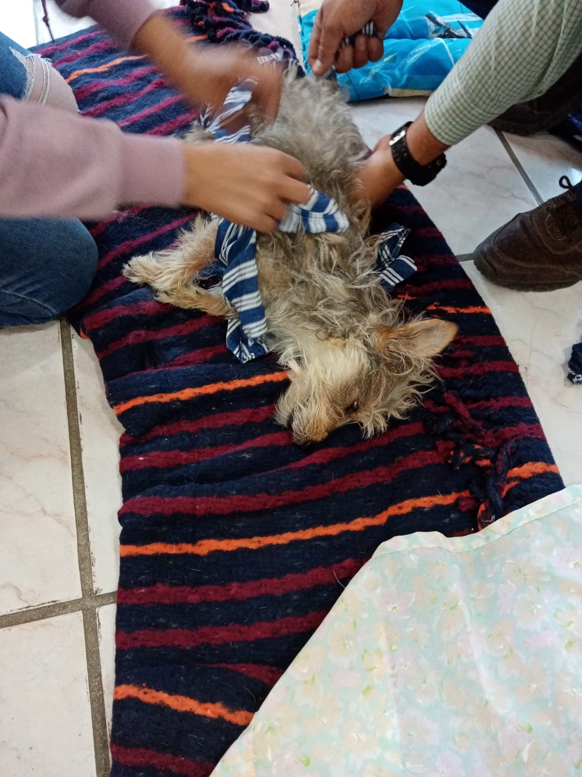 Miembros de AMI-DOGS apoyaron a los asistentes para la realización del vendaje postoperatorio, además de enseñarles cómo se realiza y así aplicarlo adecuadamente y en procuro del bienestar de la mascota.