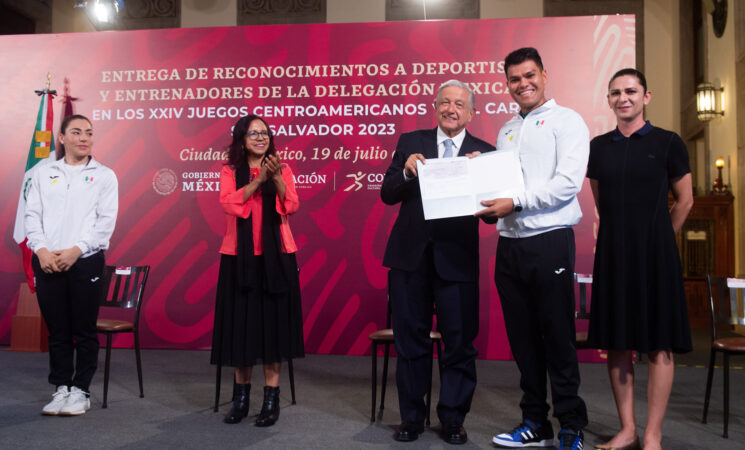 Con la entrega de reconocimientos, el presidente Andrés Manuel López Obrador celebró a la delegación de deportistas y entrenadores que colocó a México en el primer lugar de los XXIV Juegos Centroamericanos y del Caribe, en San Salvador.