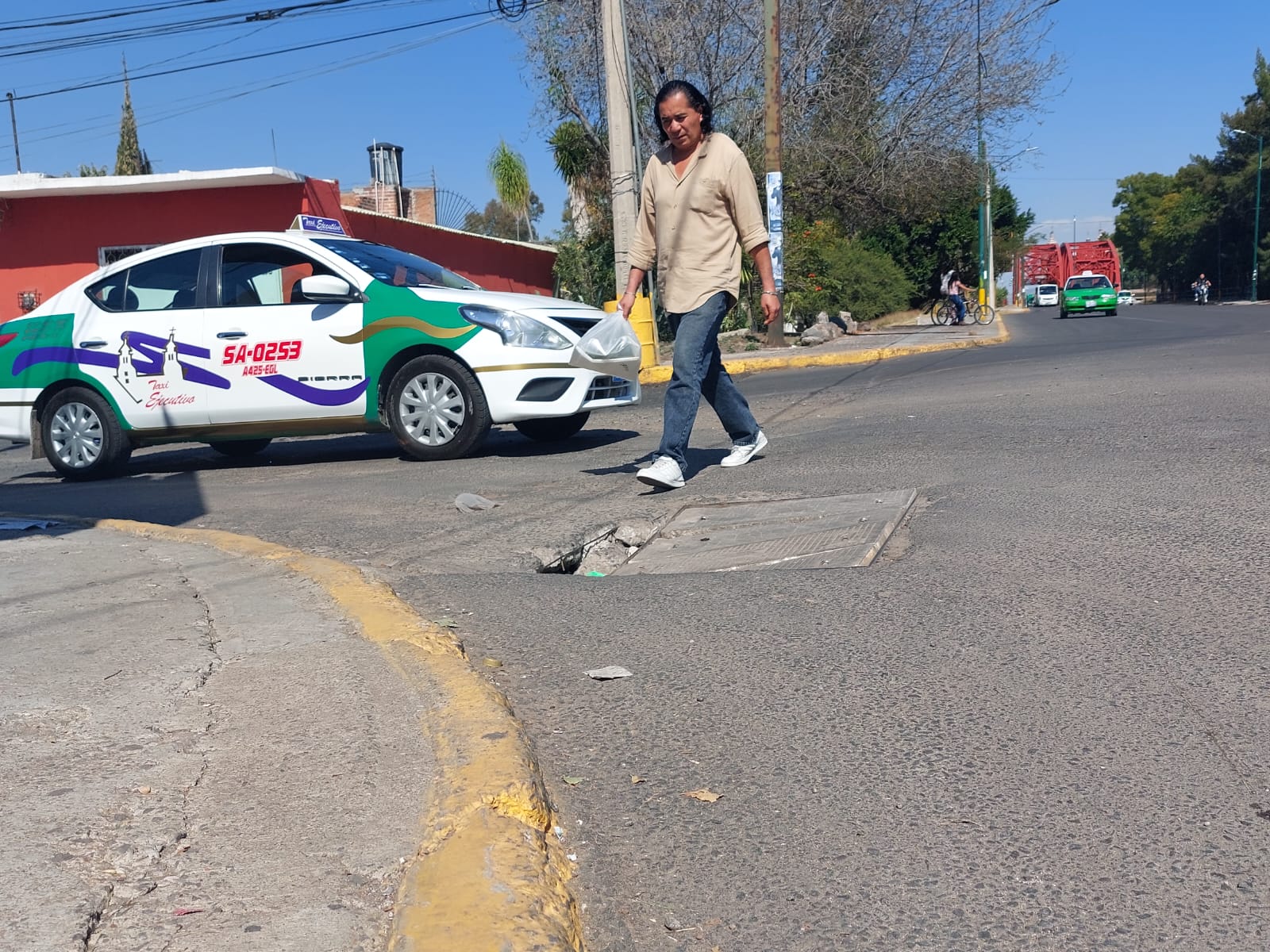 “Ya hemos visto que muchos muchachos se caen o de sus bicicletas o de sus motos, más en la noche que no se alcanza a ver del todo o algunas personas que desconocen caen ahí, se pueden lastimar y por eso solicitamos apoyo de la autoridad o de TELMEX que venga a tender esta situación, porque también las personas que pasan por ahí caminando se han doblado el pie o caído, ya tiene rato de eso y nada que lo atienden”, externó residente de colonia Guanajuato.
