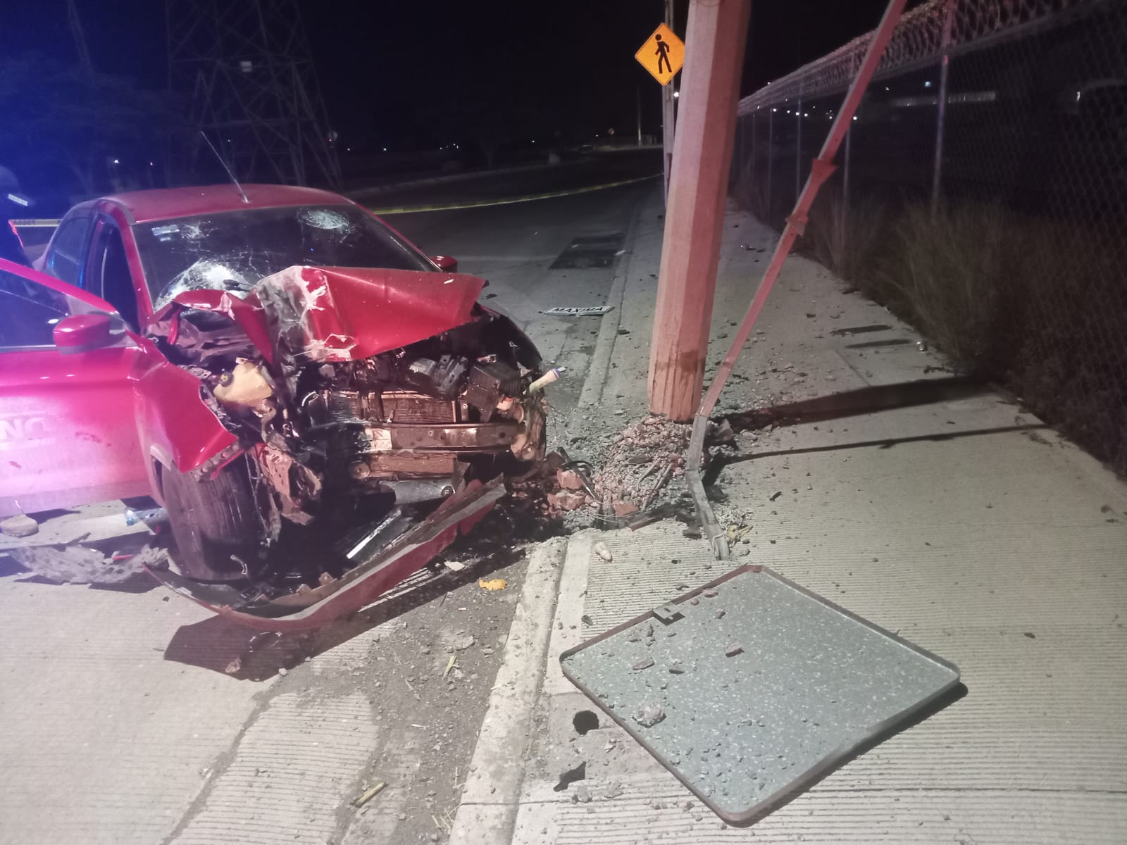 La madrugada de este domingo los sistemas de emergencia fueron alertados por un accidente vial que tuvo lugar en el bulevar Bicentenario, casi esquina con calle Veracruz, donde un automóvil Figo de la marca Ford, en color guinda y con placas de circulación GMN-393-F se impactó con un poste de concreto de CFE.
