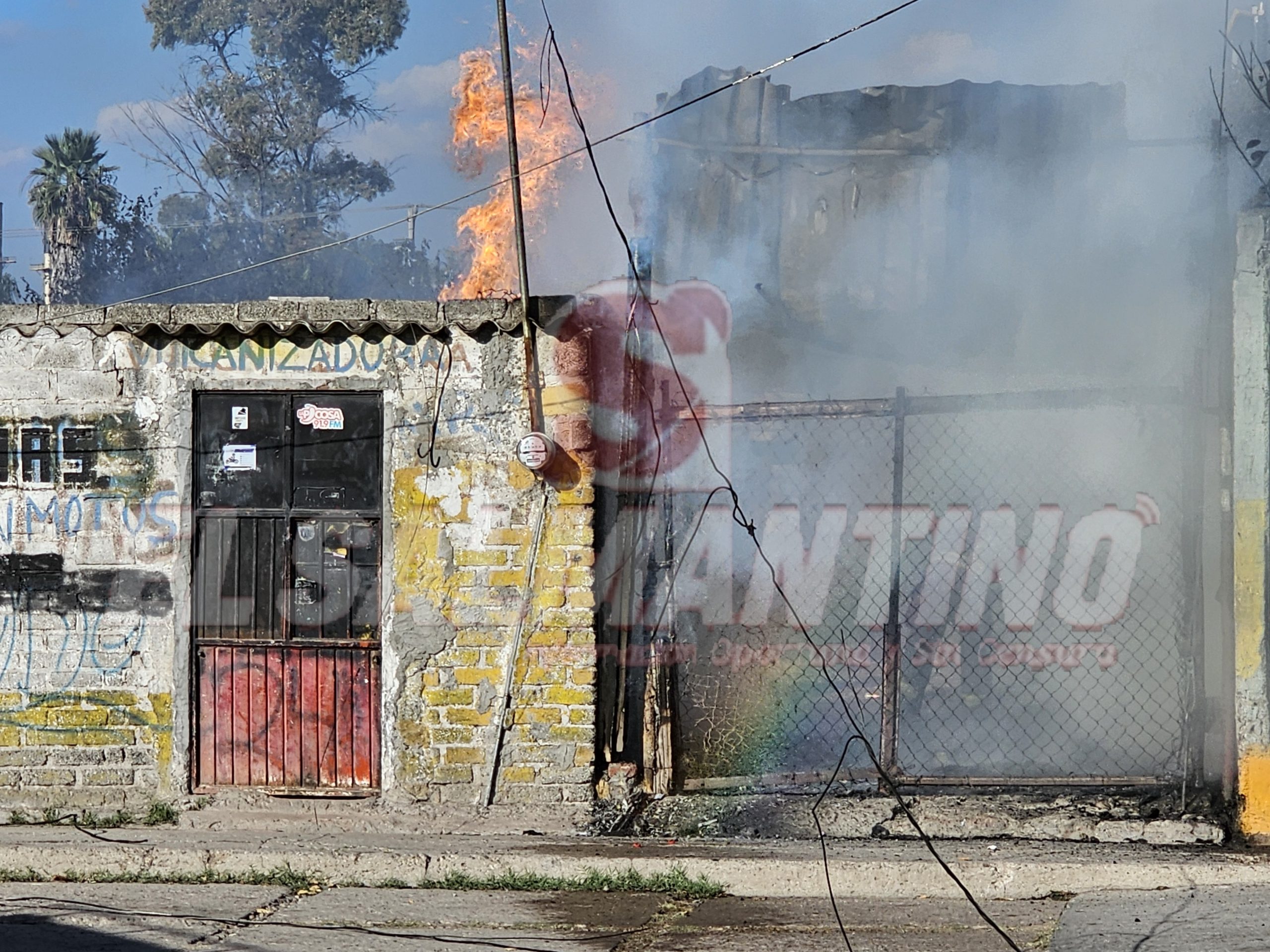 Minutos antes de la 4 de la tarde, el incendio consumió prácticamente todo el pequeño local, en donde se vieron comprometidos los cables eléctricos y un transformador, por lo que elementos de Protección Civil, solicitaron a los curiosos retirarse del lugar ya que se observaban chispas debido a las llamas.