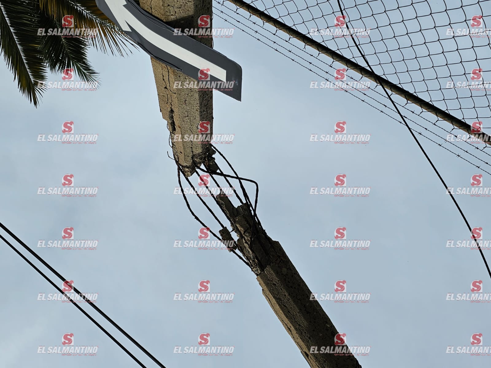 El pasado 20 de septiembre dimos a conocer las malas condiciones en las que se encontraba un poste de Comisión Federal de Electricidad (CFE) localizado en la calle Carranza, esquina con San Antonio, a las afueras de la primaria PEMEX, el cual presentaba desprendimiento de concreto y se observaba a simple vista las varillas de su interior. Los reportes no se hicieron esperar por parte de la ciudadanía y padres y madres de familia que solicitaban atención inmediata a la paraestatal a fin de evitar colapsara; asimismo, otro poste al frente se encuentra inclinado de forma importante desde su base.
