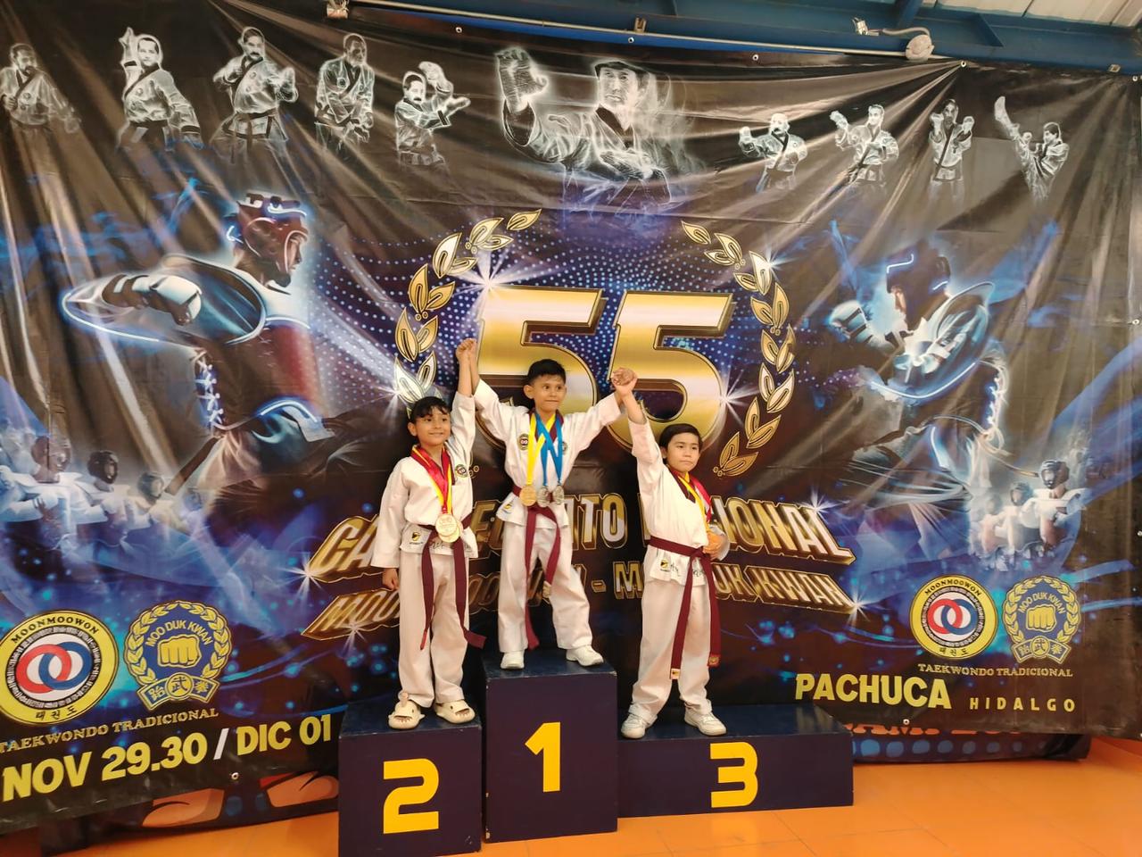 Alumnos de la escuela Moo Duk Kwan Salamanca Sur lograron excelentes resultados en el reciente Campeonato Nacional de Taekwondo, celebrado en Pachuca, Hidalgo, en el Poliforum de la Universidad de Pachuca. En este evento, que contó con la participación de 176 escuelas, la institución salmantina se destacó al alcanzar el lugar 56 con tan solo 19 participantes.