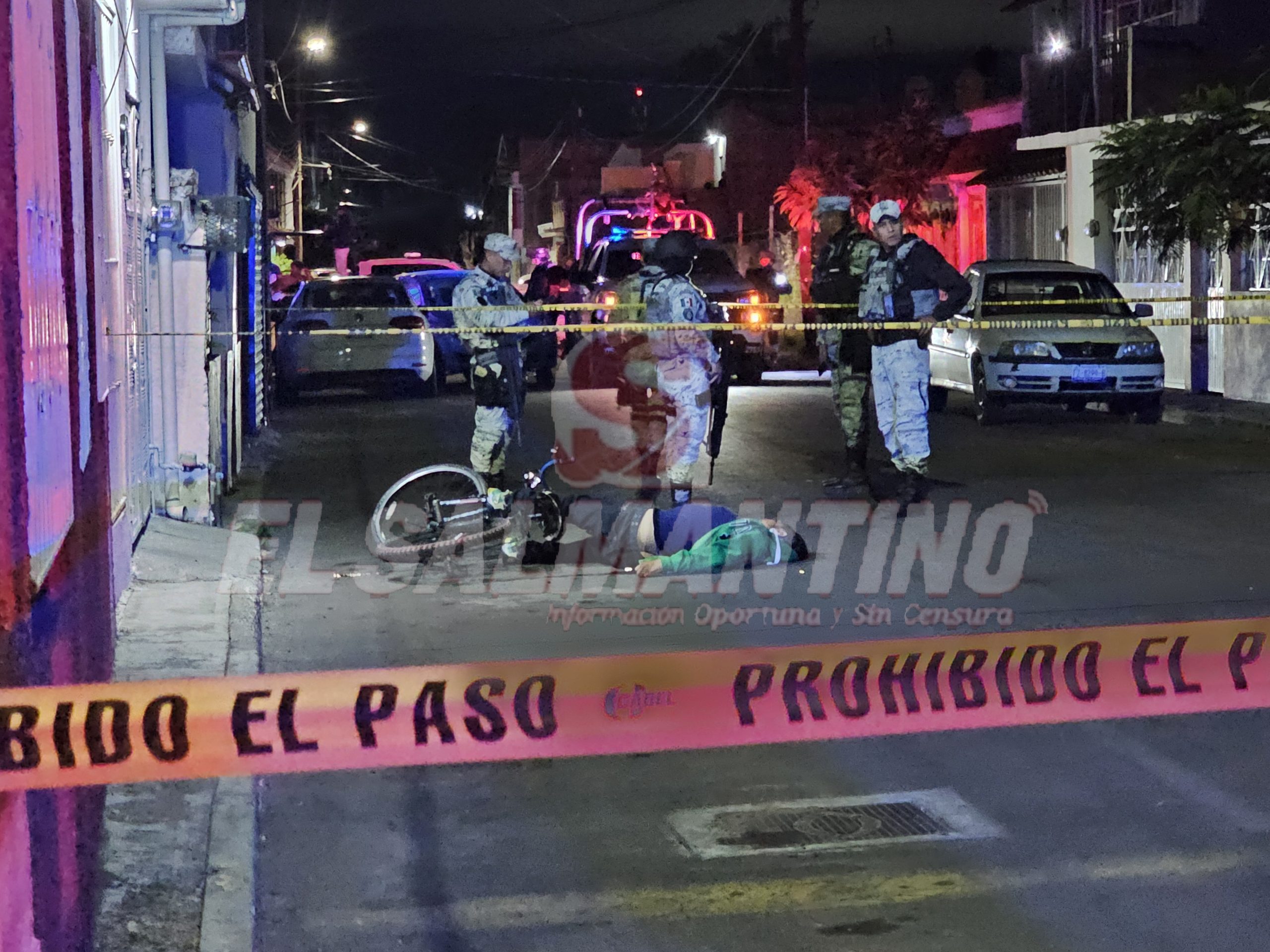 De forma inmediata, elementos de la Guardia Nacional se trasladaron al sitio donde en efecto, tuvieron a primera vista a un masculino lesionado por proyectil de arma de fuego, quien viajaba en una bicicleta de montaña la cual también se encontraba tirada a los pies de la víctima.
