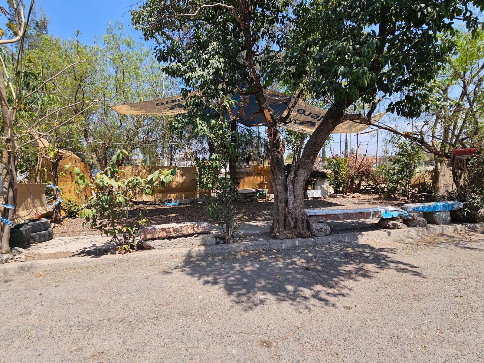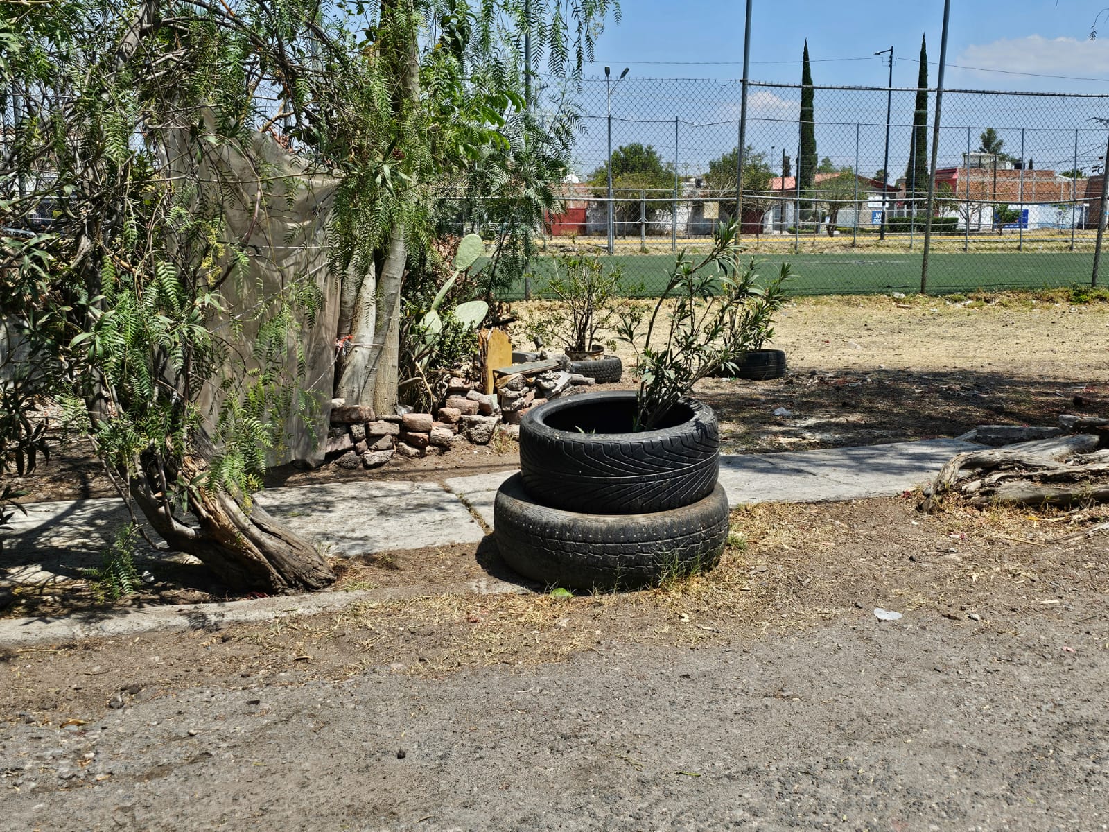 Con flora, piedras que fungen como asientos, lonas, cactáceas y neumáticos, es como se ha delimitado el sitio, el cual es utilizado como jardín personal de algunos pero que no permiten el libre tránsito a los demás vecinos y a la población en general que transita por ahí.