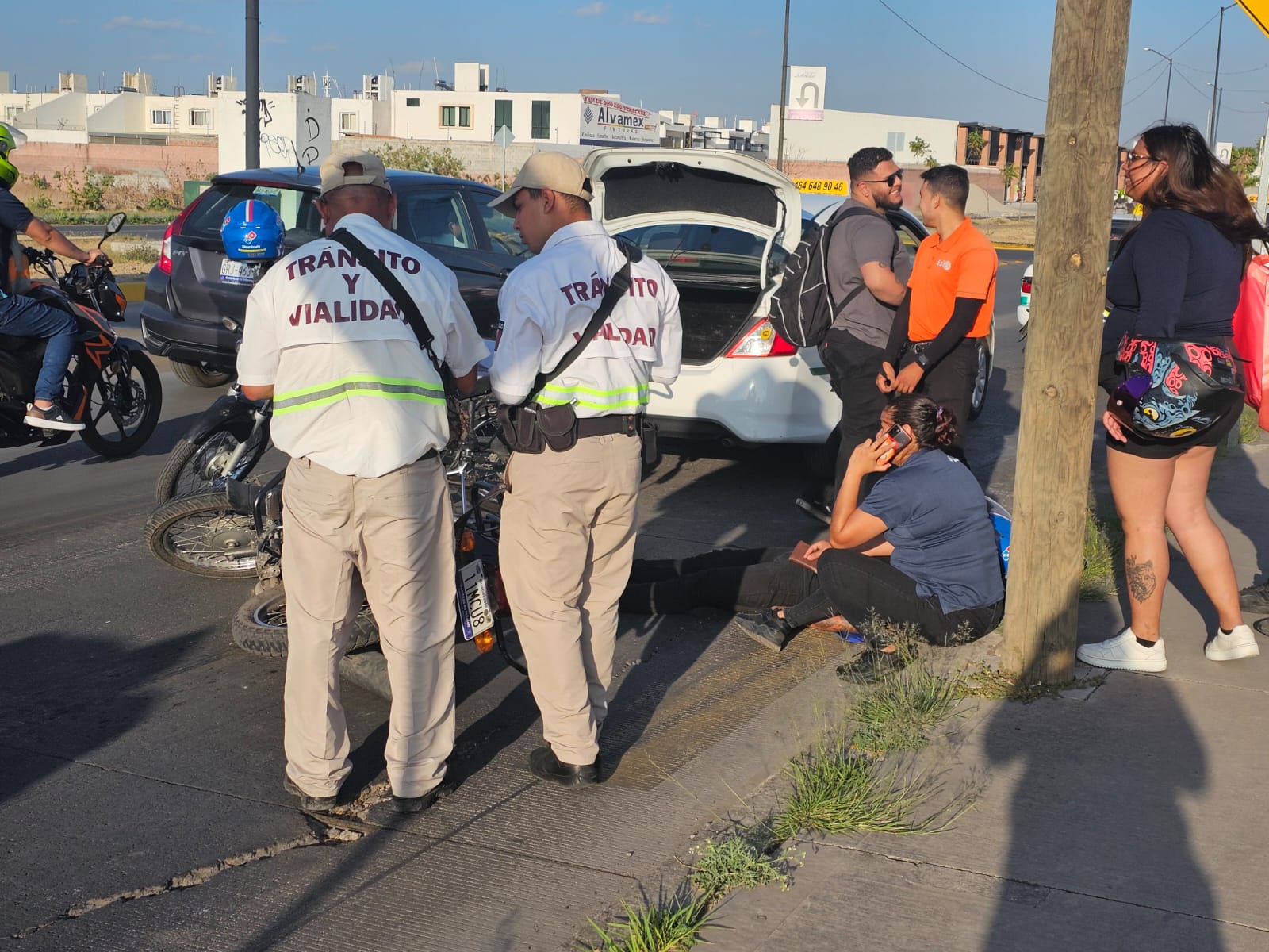 Una hora más tarde, en el camino a Mancera, se registró otro percance entre un vehículo de sitio y una motocicleta, misma en la que viajaba un repartidor de pizza, el cual quedó tendido sobre la vialidad, pero con heridas leves y consciente, por lo que al llegar los paramédicos le brindaron las atenciones adecuadas.