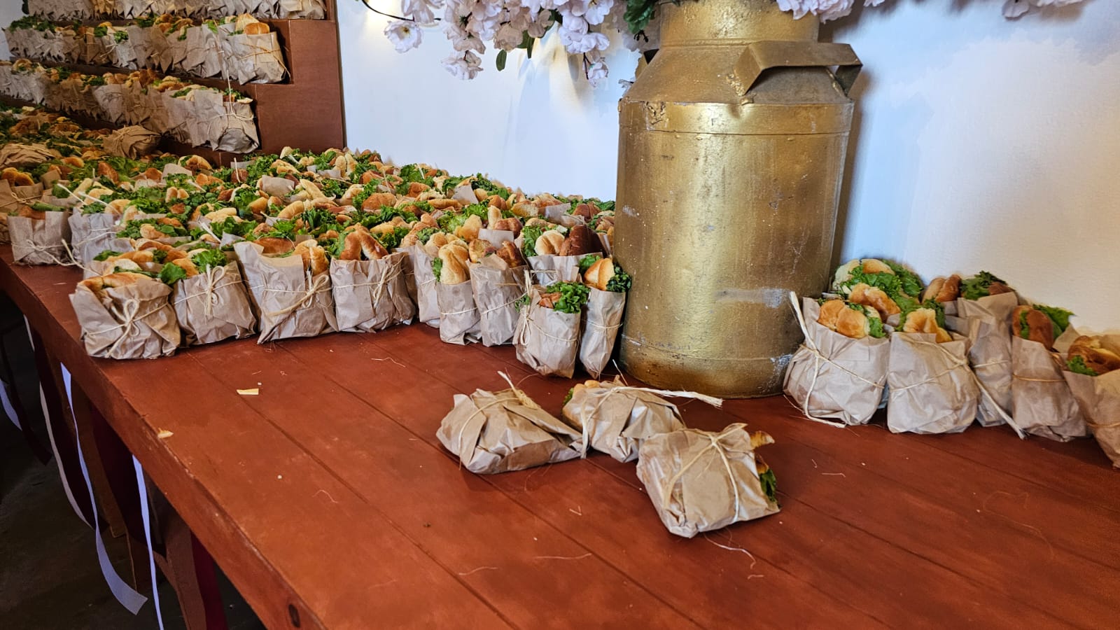 La idea de repartir alimentos y bebidas al público llevado al evento, no solo apunta a mantenerlos presentes, sino que también deja un mensaje claro de que la participación puede ser motivada con un menú muy sencillo y económico, como lo es un cuernito con verdura y jamón.
