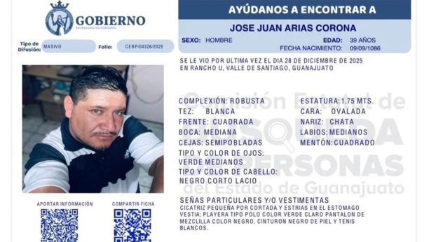 Arias Corona se encontraba en la búsqueda de su hijo, José Juan Arias Solís, de 14 años, desaparecido en el mes de junio de 2025. La Fiscalía General del Estado de Guanajuato, emitió una ficha de búsqueda, mientras colectivos y organizaciones señalan que el caso se suma a la lista de desapariciones en la entidad, situación alarmante que refleja la falta de estrategias con resultados por parte de las autoridades, pues las desapariciones parecen no tener fin en este lado del territorio mexicano.