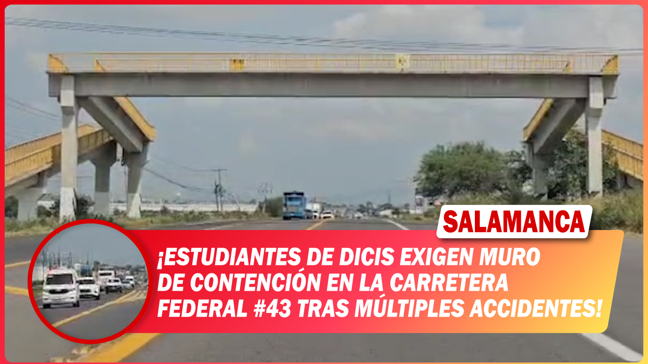 Alumnos de la División de Ingenierías del Campus Irapuato-Salamanca de la Universidad de Guanajuato piden la colocación urgente de un muro de contención sobre la carretera federal #43, específicamente en el tramo que conecta Salamanca con el puente de acceso a su plantel en la comunidad de Palo Blanco.