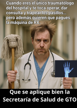 CRISIS MÉDICA EN EL HOSPITAL GENERAL DE SALAMANCA… Pos que en el Hospital General de Salamanca se anda cayendo el teatro, mis compas. Resulta que hasta el 15 de abril nomás había un traumatólogo pa’ todo, sí, ¡pa’ tooooodo! El pobre doctor tenía que atender a los pacientes internados, los que necesitaban cirugía y aparte dar consulta… nomás le faltó trapear los pasillos. Y pa’ acabarla, lo están queriendo hacer pagar una máquina de RX que se fregó durante una intervención. ¿Es neta? El compa andaba haciendo milagros con lo poquito que tenía, y encima le quieren echar el chivo.
