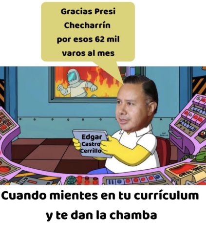 REGALANDO DINERO… Y es que al Presi Checharrín le encanta regalar dinero, pues como no es de él…. Y es que nos llamó la atención ver a un personaje ahí en el changarro del jardín principal, y me refiero a EDGAR CASTRO CERRILLO, que para quienes no sepan quién es, pues fue en su momento presidente municipal de Guanajuato, pero por el PRI. El chiste es que a este personaje lo tienen trabajando de asesor, y por sus “importantes” -nótese por favor mis 4 lectores el sarcasmo-… le pagan nada mas y nada menos que más de 62,000 mil varos mensuales. Aquí hay dos cosas que llaman la atención y que son un delito, la primera, lo tienen haciendo proyectos de nivel doctoral, nomás que este personaje apenas tiene licenciatura, y la otra. A poco los síndicos, regidores y directores generales, que se la juegan con las responsabilidades administrativas les parece justo que un foráneo, sin necesidad de venir diario ni estar en el ojo del huracán lo tengan premiado con sueldo casi del doble del que ellos ganan. Es pregunta de esas que enchilan a la gente y que por algo tiene tantos funcionaros enojados el Presi Checharrín.